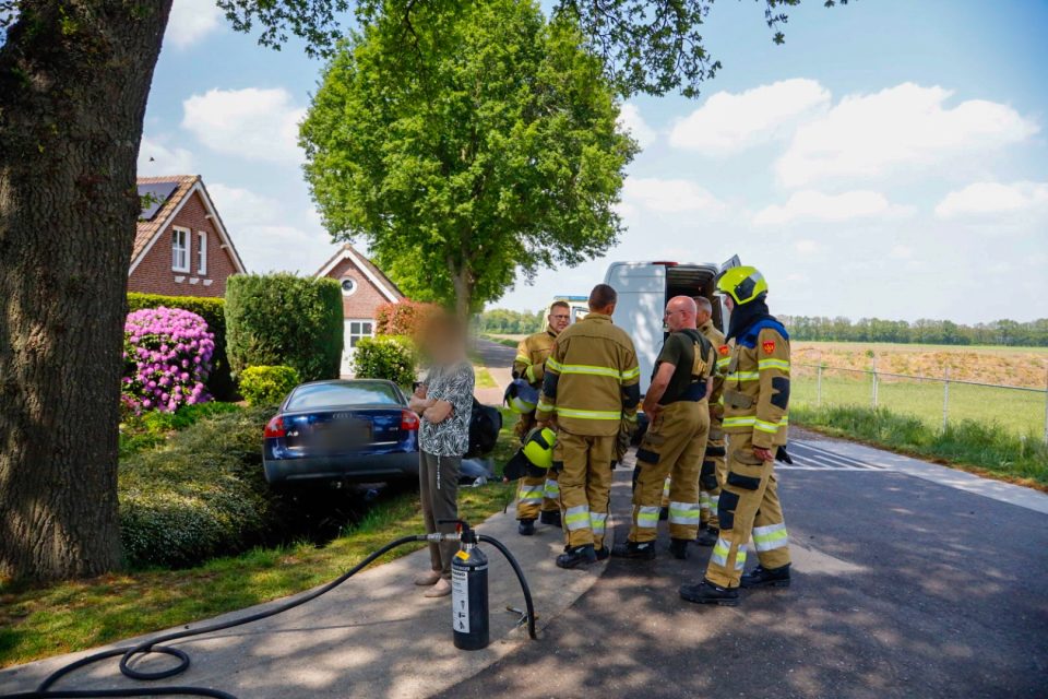 De auto kwam na de botsing in de sloot terecht. De hulpdiensten rukten met groot materieel uit waaronder de brandweer en ook een traumahelikopter.