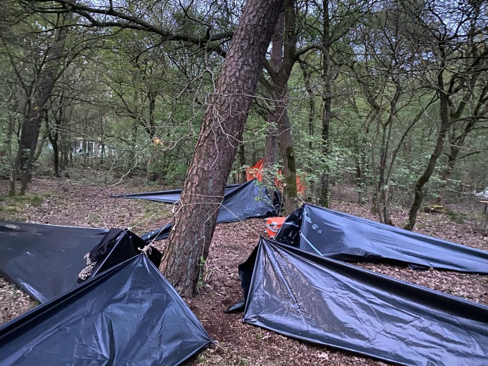 De hike van de Young Scouts ging over de Maashorst. In twee groepen werd de route afgelegd en de opdrachten onderweg vervuld. Bij aankomst op de overnachtingslocatie werden de landbouwzeilen tevoorschijn getoverd, hier kun je mooi in persoonstentje van maken waar je tijdens de bivak goed in kunt slapen. De leiding had ondertussen de voorbereidingen voor het avondeten getroffen: een kampvuurtje werd gestookt en voor iedereen was er een blik waar alle ingrediƫnten voor een lekkere macaroni in gingen. Beetje water erbij, aluminium folie als deksel en dan gaar laten worden door de hitte van het kampvuur.