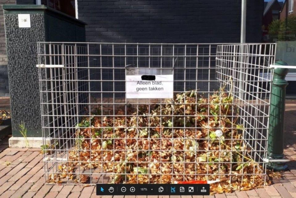 Toch zien wij burgers die blad in een zelfgemaakte bladmand deponeren. Wij zijn natuurlijk blij met eigen initiatief. Om dit te ondersteunen hebben we besloten deze “eigen” manden in het buitengebied ook te legen. Dat doen we wel met een lagere prioriteit. Maakt u in het buitengebied een eigen mand, zorg dan dat u deze plaatst op een plek waar onze vrachtwagen deze gemakkelijk leeg kan maken, dus niet in de nabijheid van een boom. Zorg ervoor dat de mand van gaas is, makkelijk te hanteren is, geen bodem heeft en een minimale afmeting heeft van 200 x 200 cm.