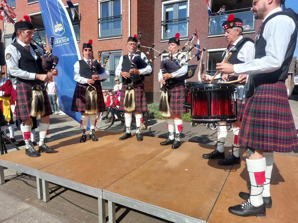 Zo werd het daggedeelte op 17 september feestelijk in stijl afgesloten door onze speciale gasten De Gemertse Firebrigade Pipes & Drums. Zij speelden traditionele Schotse muziek op de Highland Bagpipes en bijbehorend slagwerk. Zij droegen de kilt met de tartan van de Cameron of Errach, waarin het patroon van de Black Watch terugkomt. Deze kilt werd gedragen door de schotse bevrijders. Zij marcheerden door de straten van het net bevrijde Brabant en lieten ook in Boekel de inwoners kennismaken met de pipemuziek.