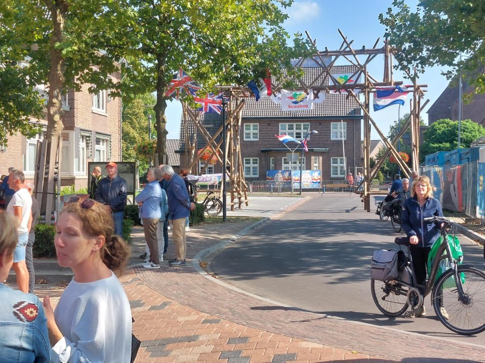 Het thema van de herdenkingen is dit jaar ‘Brug naar vrijheid’. Als je kijkt naar operatie Market Garden, dan draaide de hele operatie om bruggen. Omdat we in Boekel niet echt water met bruggen kennen heeft Scouting Boekel een symbolische brug gebouwd. Bij aankomst en vertrek op het plein reden de militaire voertuigen onder de speciaal door de scouting gebouwde symbolische ‘Brug naar vrijheid’ door.