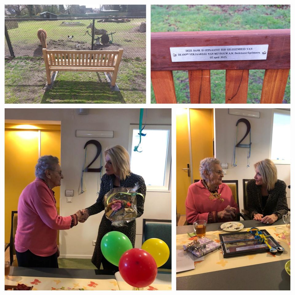 Tijdens dit bezoek overhandigde de burgemeester een foto van het bankje wat ter gelegenheid van de 100e verjaardag van mevrouw Beekmans- Egelmeers is bij de dierenweide nabij Donkzicht.