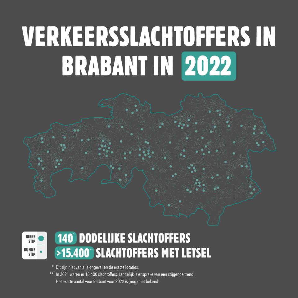 Het aantal verkeersdoden is het topje van de ijsberg. In 2021 belandden in Noord-Brabant meer dan 15.000 mensen op de spoedeisende hulp in het ziekenhuis naar aanleiding van een verkeersongeval. Volgens recente cijfers van VeiligheidNL is er een stijgende trend als het gaat om het aantal verkeersslachtoffers in Nederland. Met name fietsers blijken kwetsbaar.