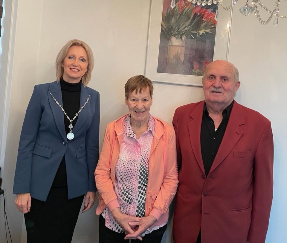 Burgemeester Caroline van den Elsen heeft het diamanten bruidspaar namens het college van B&W persoonlijk mogen feliciteren met deze mooie mijlpaal.