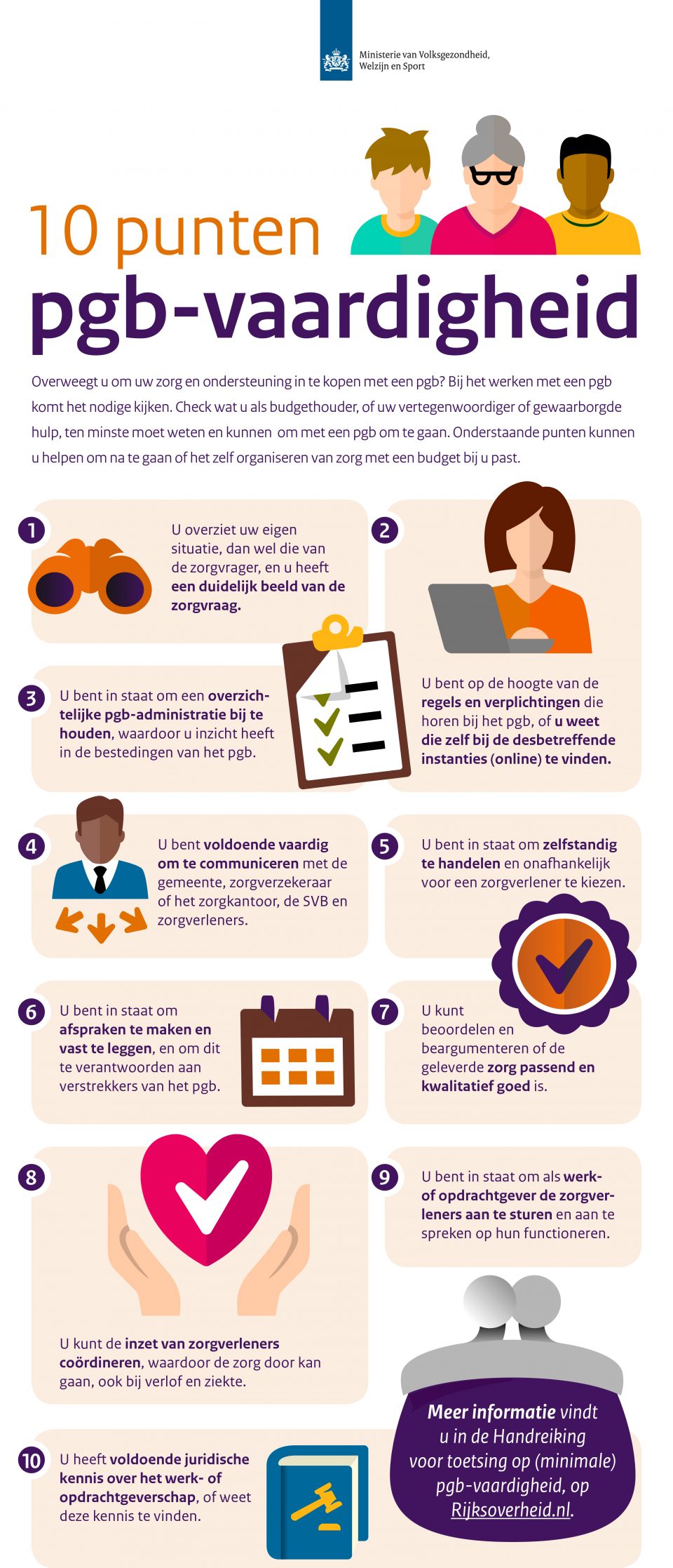 Belangrijk om te weten is dat dit gesprek NIET gaat over de beschikking, deze verandert niet. Hier ziet u een overzicht, opgesteld door Vws, waarin beschreven staat wat er van een PGB beheerder verwacht wordt.