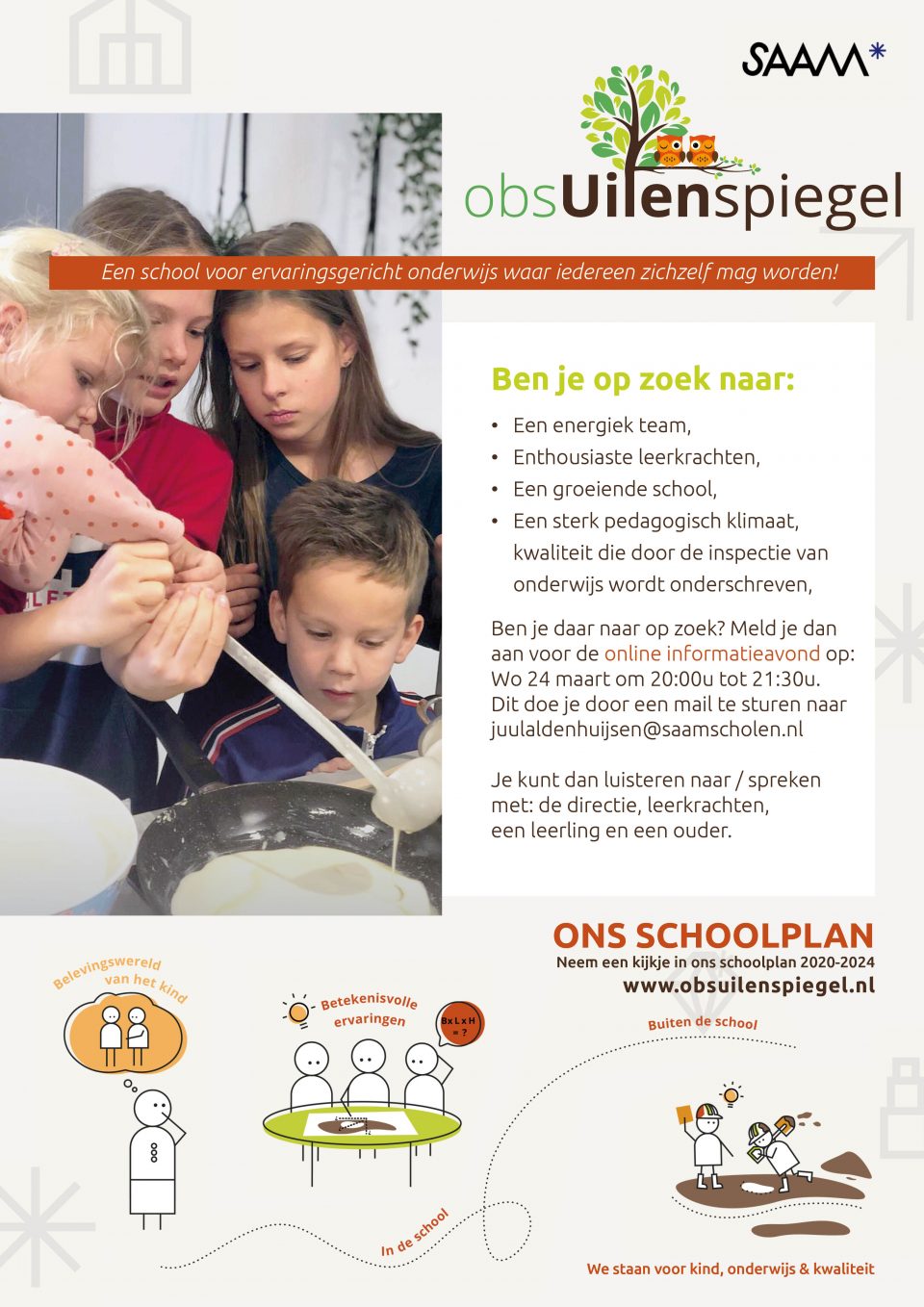 Binnenkort organiseert OBS Uilenspiegel een informatie avond. Dit jaar zal dit een online avond zijn op woensdag 24 maart van 20.00 uur – 21.30 uur.