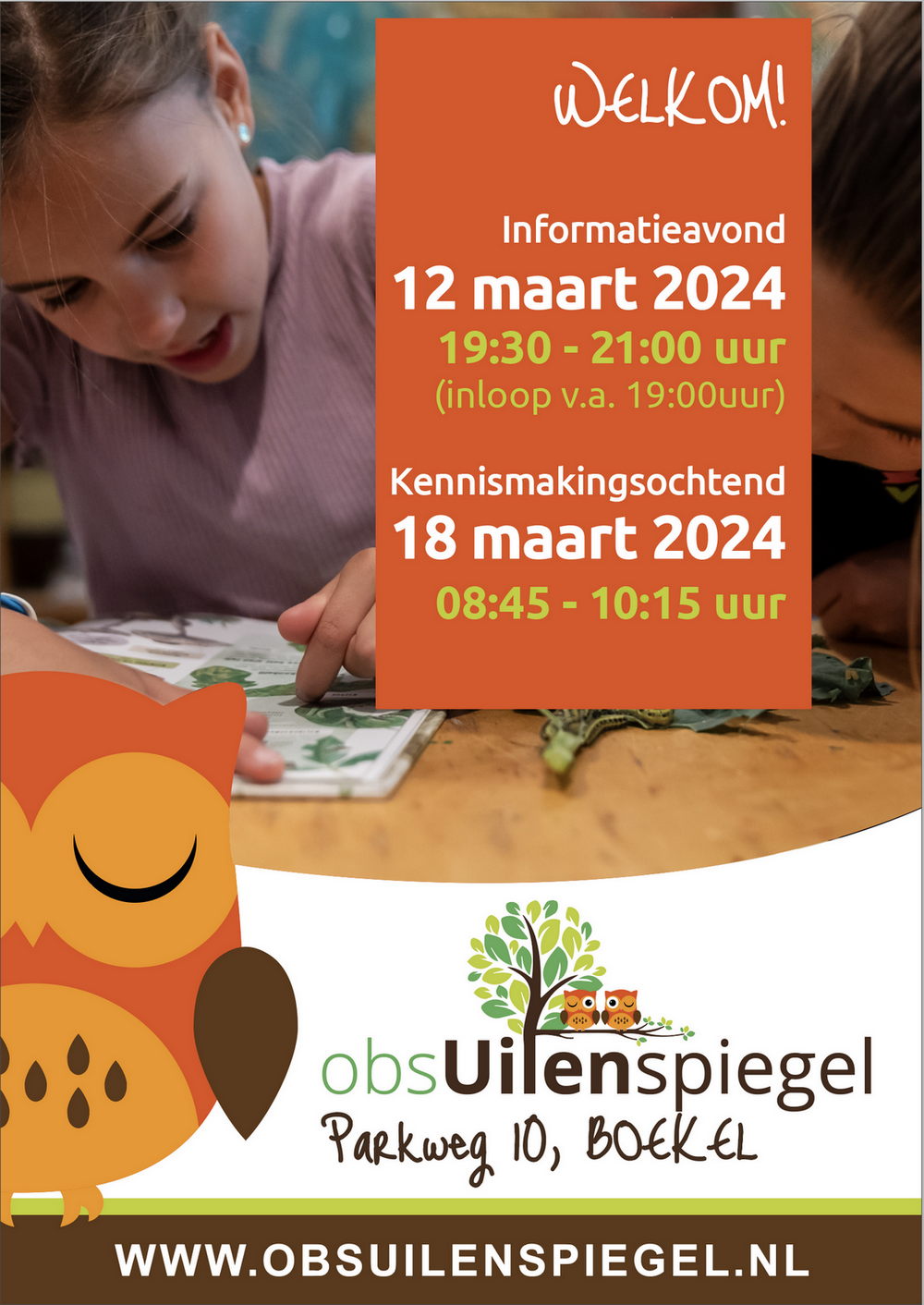 Op 12 en 18 maart vinden de informatieavond en kennismakingsochtend plaats op obs Uilenspiegel in Boekel.