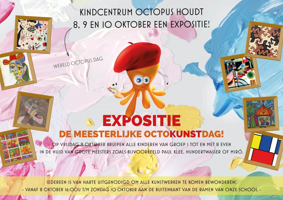 Daarom organiseren wij dit jaar de eerste editie van De Meesterlijke OctoKUNSTdag. Alle groepen zullen in verschillende ateliers aan de slag gaan volgens de werkwijze van een bepaalde kunstenaar. Wat zullen ze allemaal ontdekken?