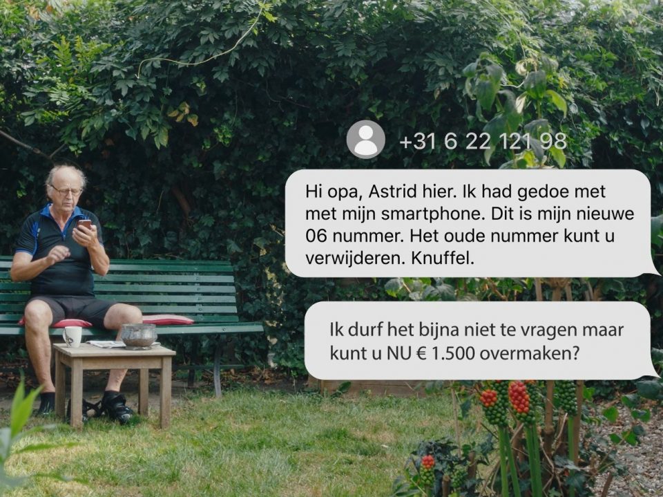 Bij hulpvraagfraude ontvang je een bericht van een oplichter die zich voordoet als een bekende. Bijvoorbeeld als je (klein)zoon, (klein)dochter of als vriend of vriendin. Vaak begint het met een berichtje dat de bekende een nieuw telefoonnummer heeft. Daarna volgt al snel het bericht dat diegene in de problemen zit. Er wordt gevraagd om hem of haar snel te helpen door geld over te maken of te klikken op een betaalverzoek. Doordat in het bericht staat dat er grote nood is en het geld direct nodig is, zijn veel mensen geneigd om het geld aan toch maar snel over te maken. Vertrouw zo’n bericht daarom niet zomaar.