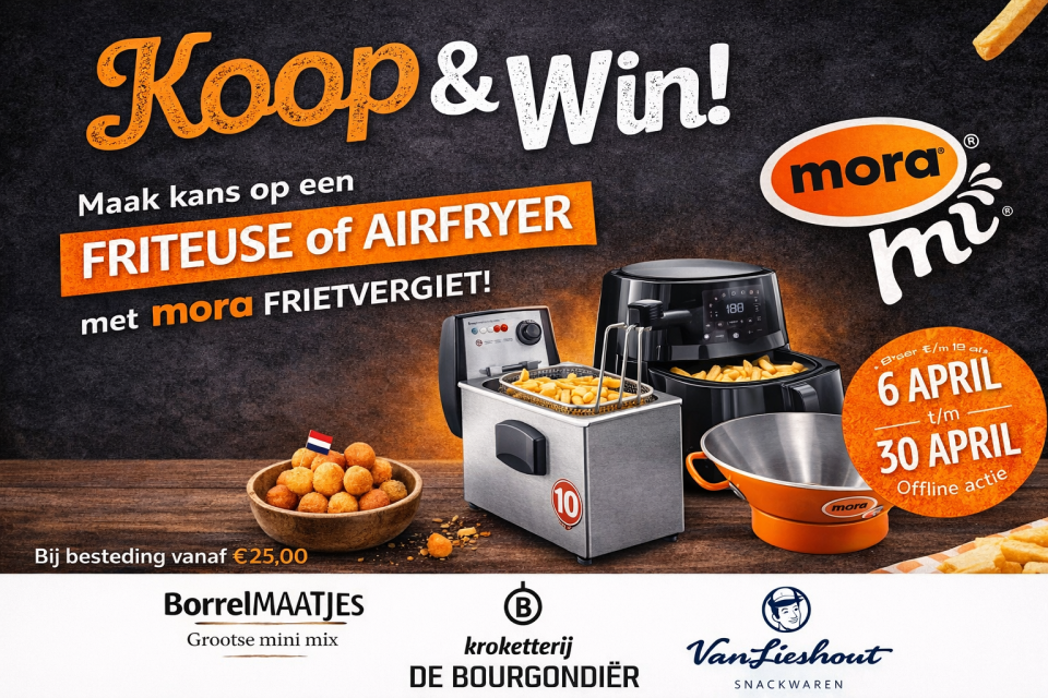 Hebben jullie ook acties of aanbiedingen? Anne knikt enthousiast. “Zeker! We hebben regelmatig leuke acties voor onze klanten.” En deze wil je niet missen: “Van 6 tot en met 30 april maak je bij een besteding vanaf €25 kans op een friteuse of airfryer, inclusief een Mora frietvergiet. Gewoon bij je aankoop,” legt Anne uit. “Altijd leuk toch, zo’n extra kans?”