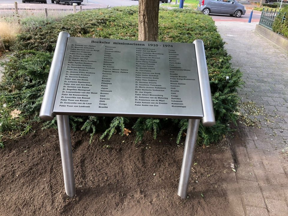 Op het kerkplein, naast de wereldbol voor de Boekelse missionarissen, is donderdag een nieuw bord geplaatst met daarop de 51 namen van de missionarissen en hun werkgebied. Hiermee ging een langgekoesterde wens in vervulling van zowel de werkgroep Missiemonument als van familieleden van de missionarissen.
