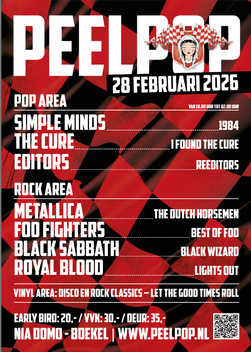De organisatie van Peelpop heeft, met behulp van vele vrijwilligers, Nia Domo aan het St. Agathaplein in Boekel weer helemaal omgebouwd voor hun vertrouwde muziekfestijn. Op zaterdag 28 februari verschijnen er zeven geweldige bands in twee verschillende area’s en zullen er in een derde zaal 70’s-80’s hits gedraaid worden.