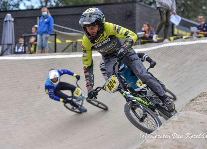 werd in de kwartfinale zodanig gehinderd door een tegenstander dat hij dit afsloot op de vijfde plaats en daarmee uitgeschakeld was voor verdere deelname. In de halve finale kwam Wes Strik (Boys 8 jaar) op een derde plaats liggend in de laatste bocht ten val. Wes had toch wel wat pijn maar werd door de EHBO geholpen. Een grote rol speelde zeker ook de teleurstelling van de uitschakeling. Even later was het de beurt aan de Men17+ met Pieter van Lankveld en Matthew van Dam. In deze halve finale bereikte Pieter een zevende plaats en Matthew kwam door een valpartij met drie crossers als zesde over de streep waarmee voor hen aan de wedstrijd een einde kwam. Drie fietscrossers plaatsten zich dus wel voor de grote finale. Sam Meijer (Boys 10 jaar). Jur van Brussel (Boys 11 jaar) en Sven Pennings (Boys 12 jaar). Sven moest in de finale tevreden zijn met de vierde plek, Sam bereikte wel het podium met plaats drie maar het beste resultaat werd vandaag behaald door Jur die in de eerste bocht van plaats vier naar plaats twee reed. Op die plaats bleef hij ook tot de laatste bocht rijden maar ook toen sloeg hij weer toe. Via een hele mooie manoeuvre wist hij ook zijn voorganger voorbij te steken en dus zeer verdiend naar de overwinning te rijden.