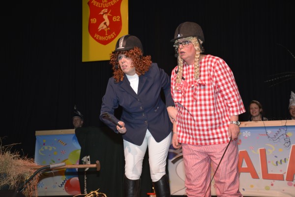 De KPJ verbouwde het podium tot een volwaardige bouwplaats en hadden het over diverse verbouwingen in Venhorst. Na de pauze volgde de dames met Wout’s Vinken met een mooie dans, wat een heel grappig effect had met black light. De Lultuuters hadden een waar trouwerij ten tonele gebracht, wat de zaal goed aan het lachen bracht. “2 x niks 3 x minder” zaten in de Duck Out langs het voetbalveld en daar maakte ze van alles mee wat goed aansloeg bij het plubliek. Tamara en Bianca kwamen het podium op gegaloppeerd en hadden als amazones veel meegemaakt en ze zadelde het publiek daarmee op.
