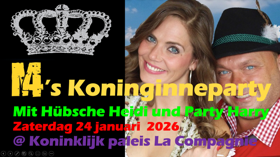 Ben je al warm en heb je zin in een geweldige feestavond? Kom dan zeker zaterdagavond 24 januari naar de Koninginneparty 2026 in de Balzaal van Residentie La Compagnie. Zoals elk jaar wordt het een knallend feest, dit keer met DJ Max en feestduo Hübsche Heidi und Party Harry. Aanvang: 20.00 uur, deuren op vanaf 19.30 uur.